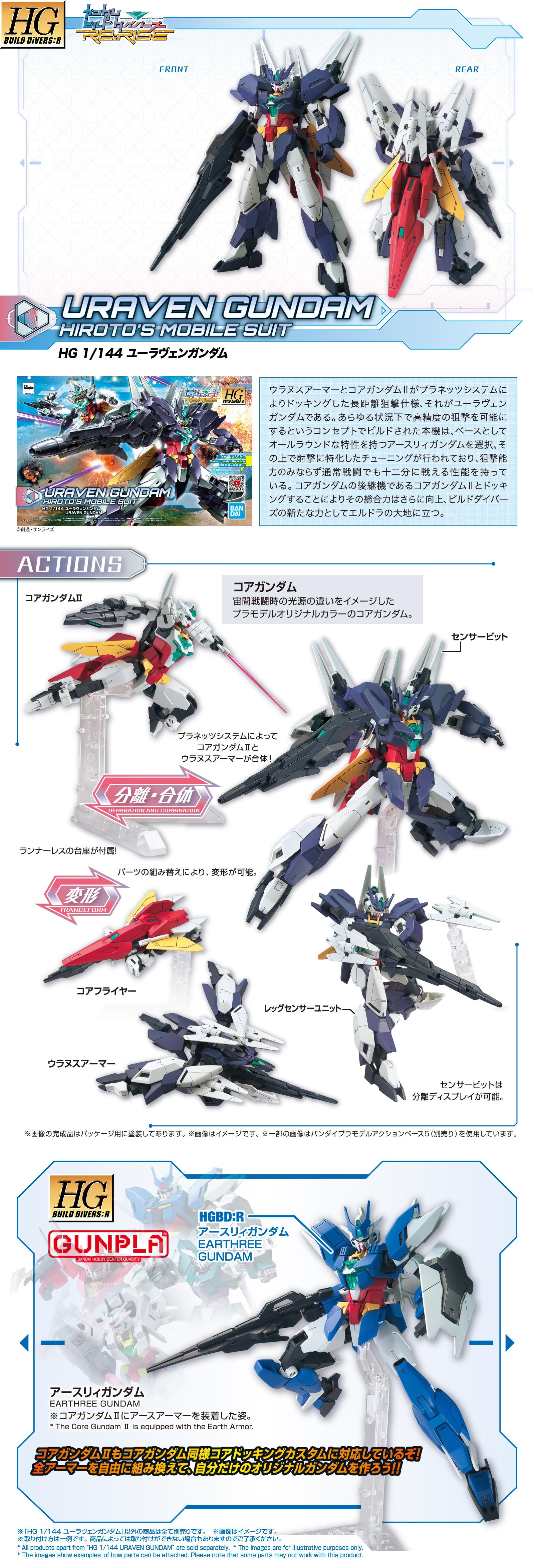 Endnu en ny Gundam i Planets Gundam systemet. Fra anden sæson af "Gundam Build Divers Re:Rise" the Uraven Gundam! Der er en Core Gundam med i pakken som en del af PLANETS system. Denne gang Core Gundam II, som kan forvandles for sig selv, til en Core flier. Bland med andre PLANETS systems for den ultimative custom Gundam