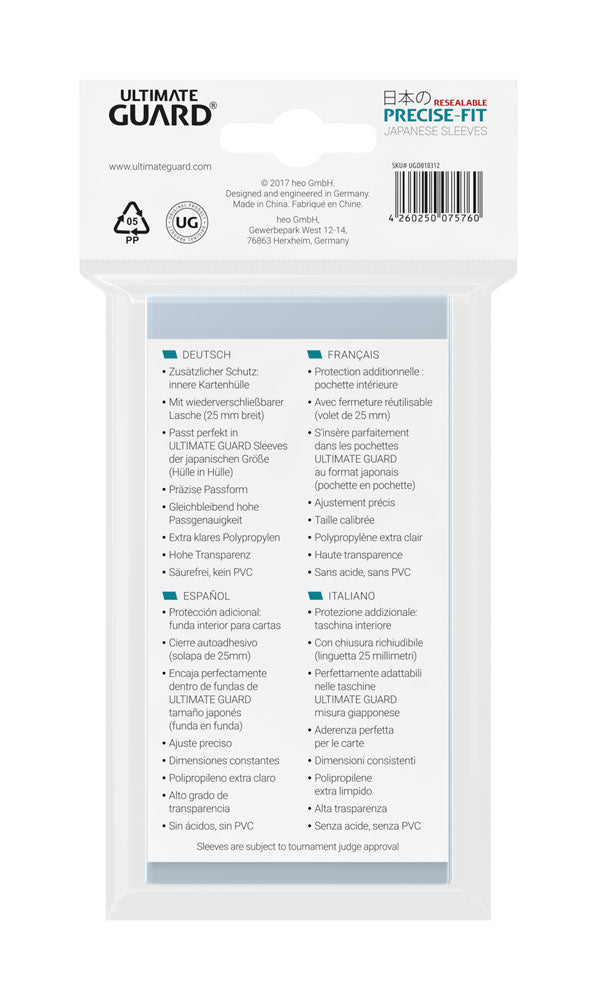 Ultimate Guard Precise-Fit Sleeves Resealable Japanese Size Transparent (100)